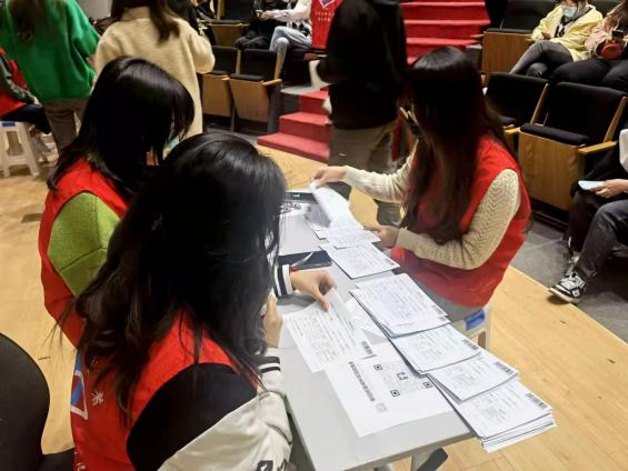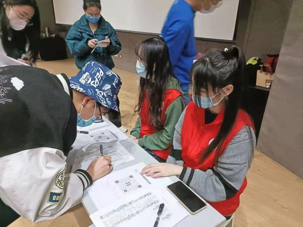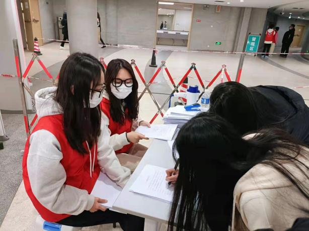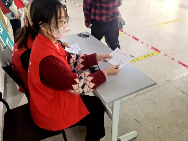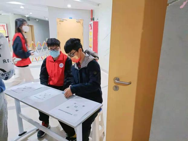 为确保接种工作的万无一失,志愿者们做好了充足的准备,分工明确:负责场内外人流引导、填写知情同意书、留观区出口核验工作等。这一次,他们身着“青年志愿者协会”统一着装,执甲上阵,以实际行动,弘扬“奉献、友爱、互助、进步”的志愿者精神。整个过程中,他们始终保持热情、认真的工作态度,这使他们得到了在场同学与老师们的一致认可。
