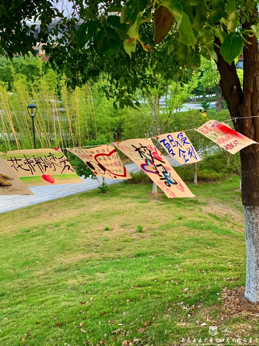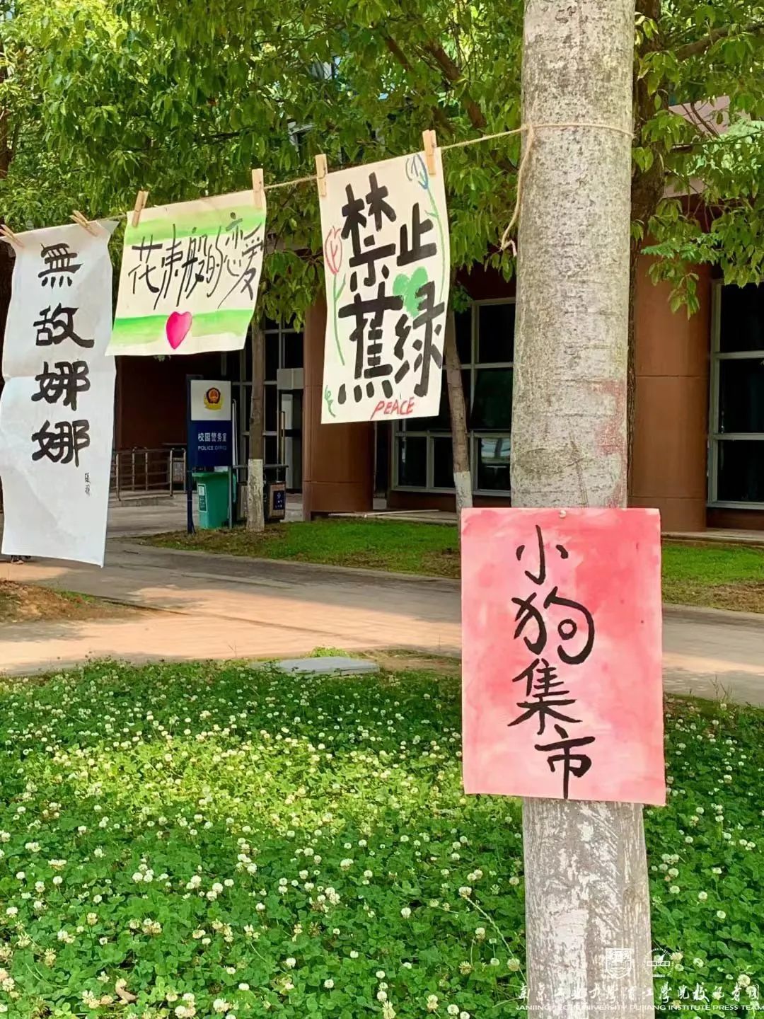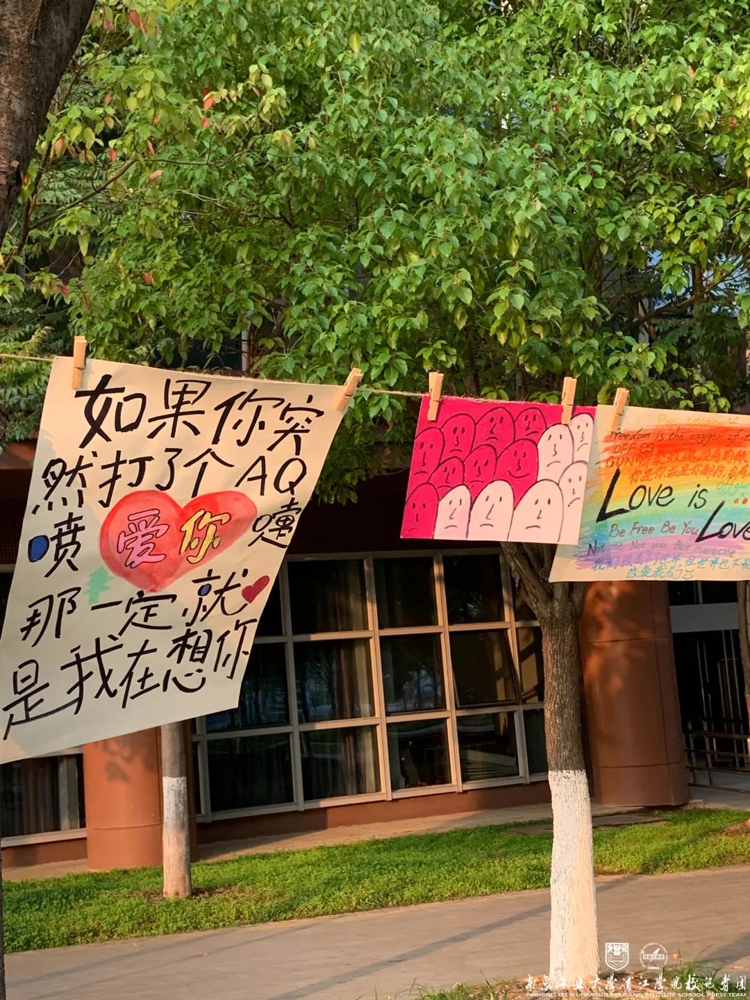 活动结束后,展出的作品在绿荫下随风飘摇,匆匆路过的同学不自禁地停下脚步,享受小狗带来的片刻治愈。小狗才不是什么贬义词,小狗带来的爱热烈纯粹、炽热忠诚,愿你在浦江转角被小狗治愈,生活充满阳光,烦恼消散如烟。