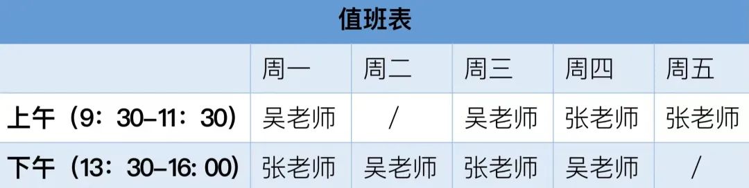 心理咨询时间:每周一至周五(9:30--11:30 ,13:30--16:00)