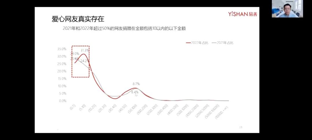 99公益日是腾讯公益于2015年开始举办的,旨在传播公益思想的年度公益活动,每年有数千家大小机构与千万网民参与其中,对如此之多的数据进行分析后,陶泽先生与我们分享了一些结论与信息。今年度的公益日总共2900万人次左右参与,3306815209元捐款额,个人平均捐款额56.9元,公募机构417家,执行机构2214家。数据上,今年比之去年的参加人次、捐款额与参加机构都有所下降。但这并不代表公众参加公益的热情有所下降,因为腾讯将99公益日的许多活动平均散布到了全年度中,从全年度的角度来看,数据是上升的。