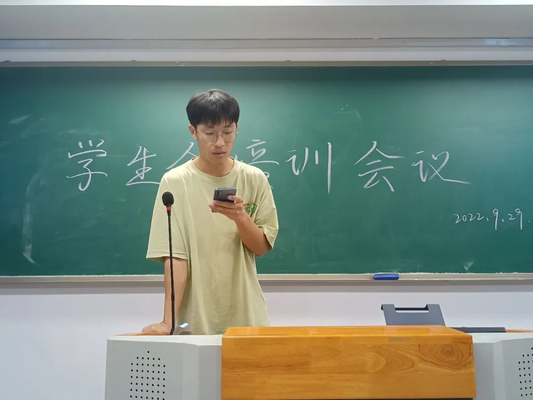 2022年9月30日晚,外国语学院学生会培训会议在L8—409教室召开。