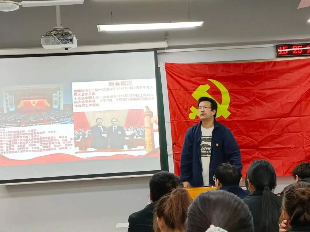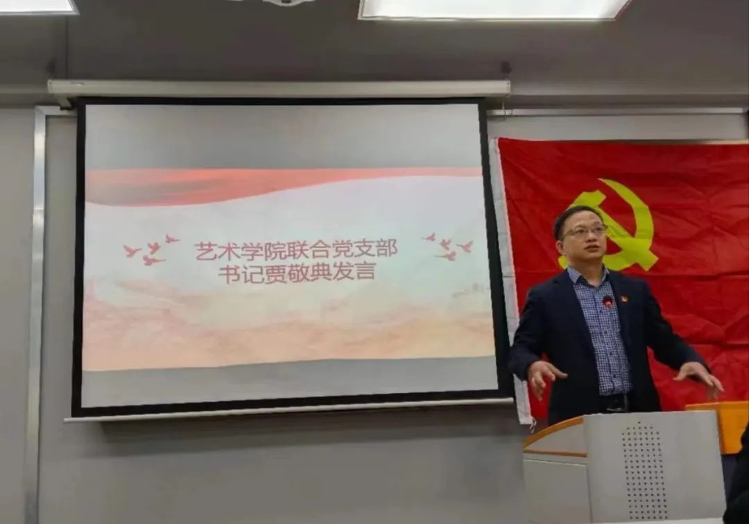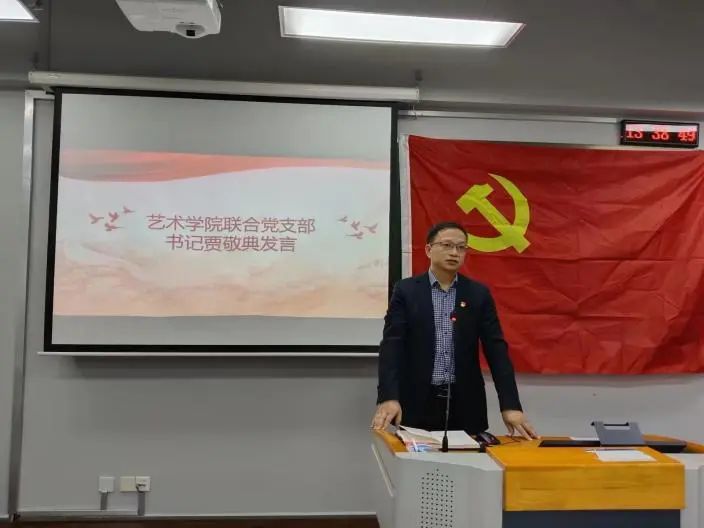 随后,由艺术学院联合党支部贾敬典书记发言,他首先表达了对所有参加党课同学的热切期望与祝愿,接着从思想站位、理论学习、实际行动三个方面介绍了一名党员应该有的责任和担当。