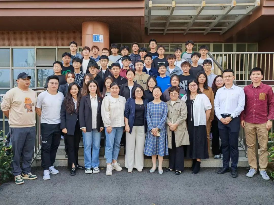 会议进行第四项,参与开班仪式的全体成员在善学楼L8处合影留念。