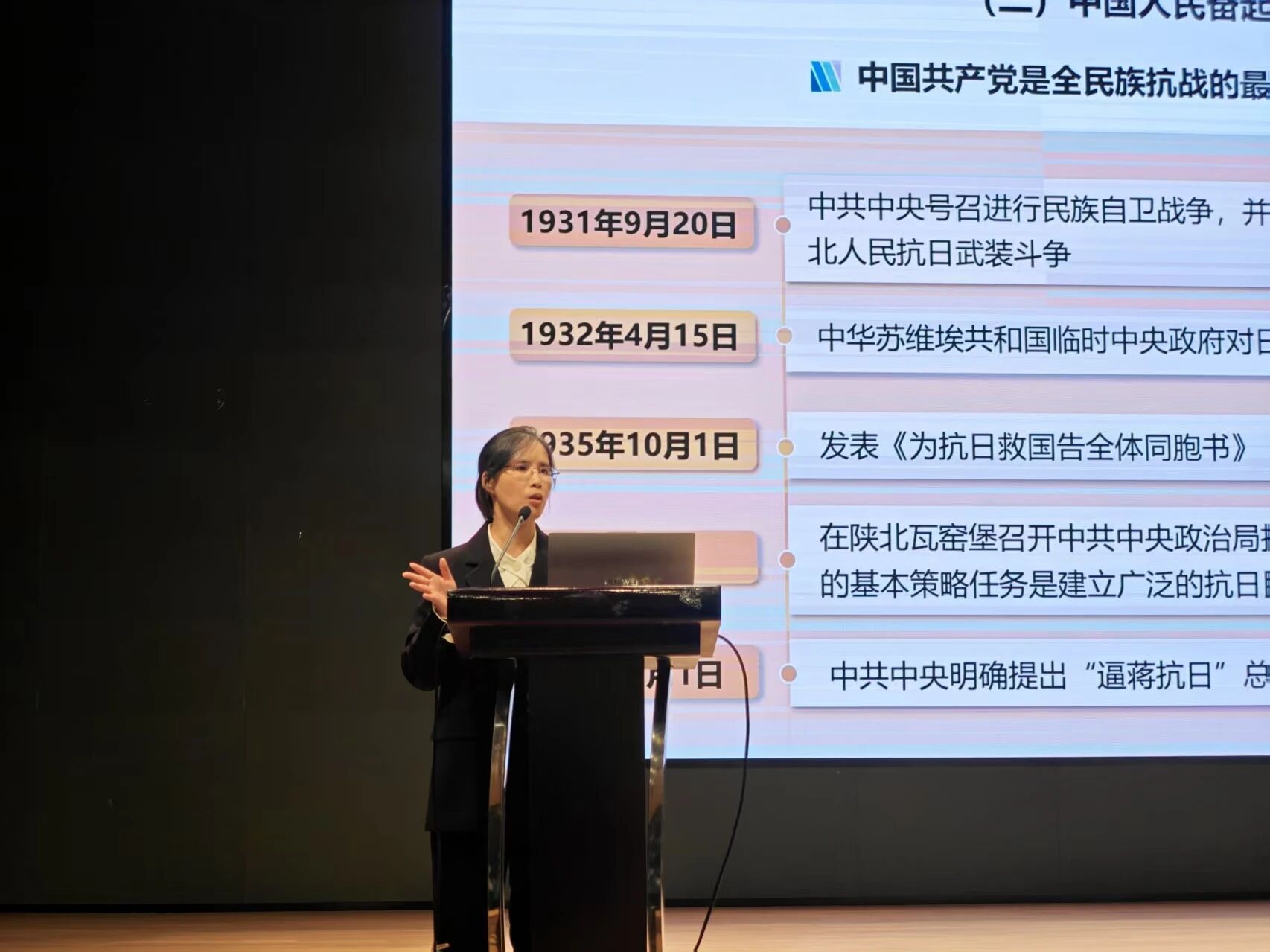 开班典礼结束后,林静以《抗战胜利80周年专题“神圣的民族解放战争”》为题,围绕为什么说中国共产党是中华民族抗日战争的中流砥柱,结合自身生活工作经历为学员们讲授了既严谨又生动的党课第一讲。