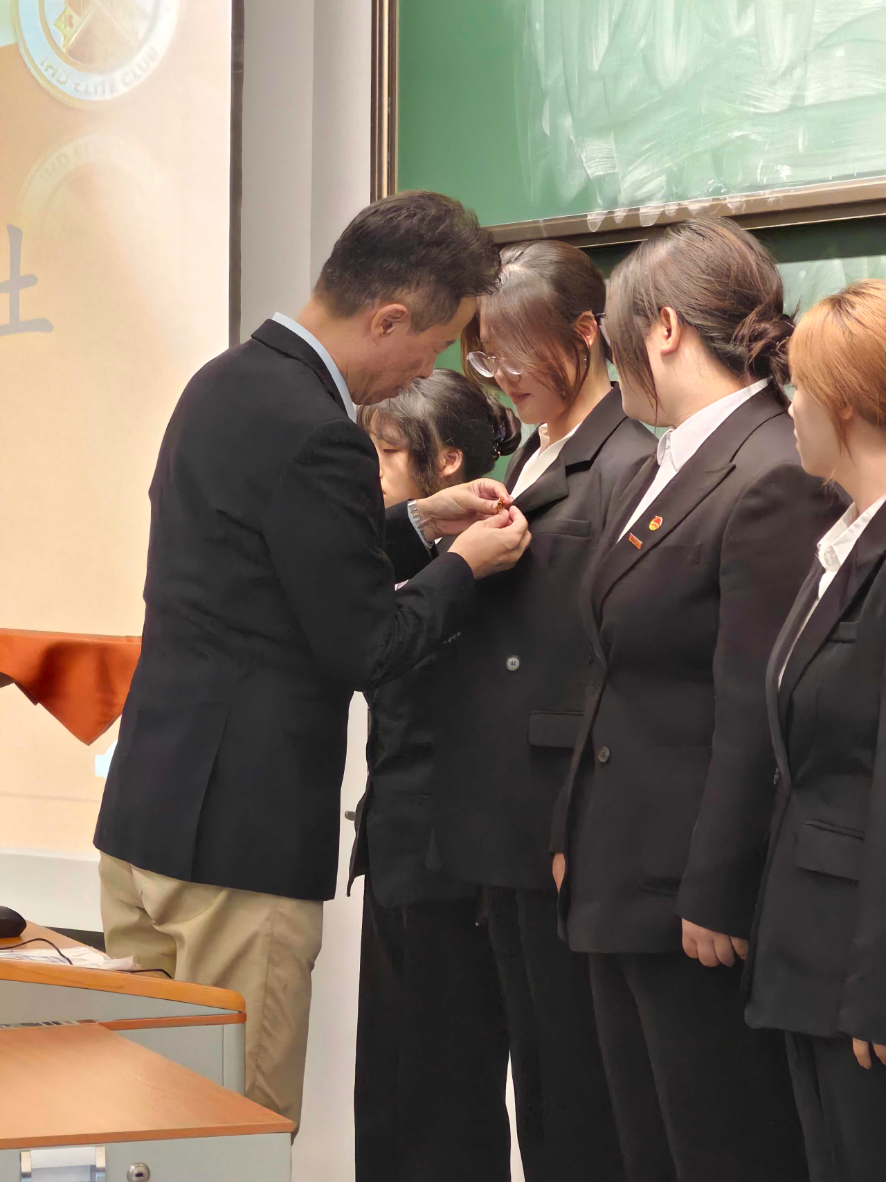 宣誓结束,在热烈的掌声中,徐慎行院长、龚康年副院长亲自为新成员佩戴徽章。一枚枚徽章不仅代表着身份的改变,更承载着学院领导的殷切期许。