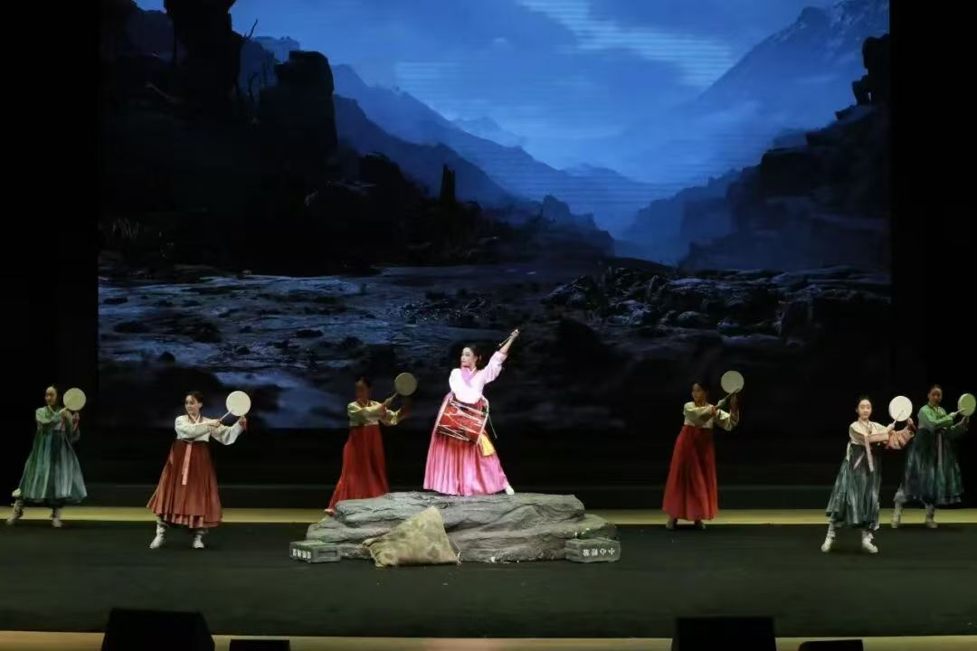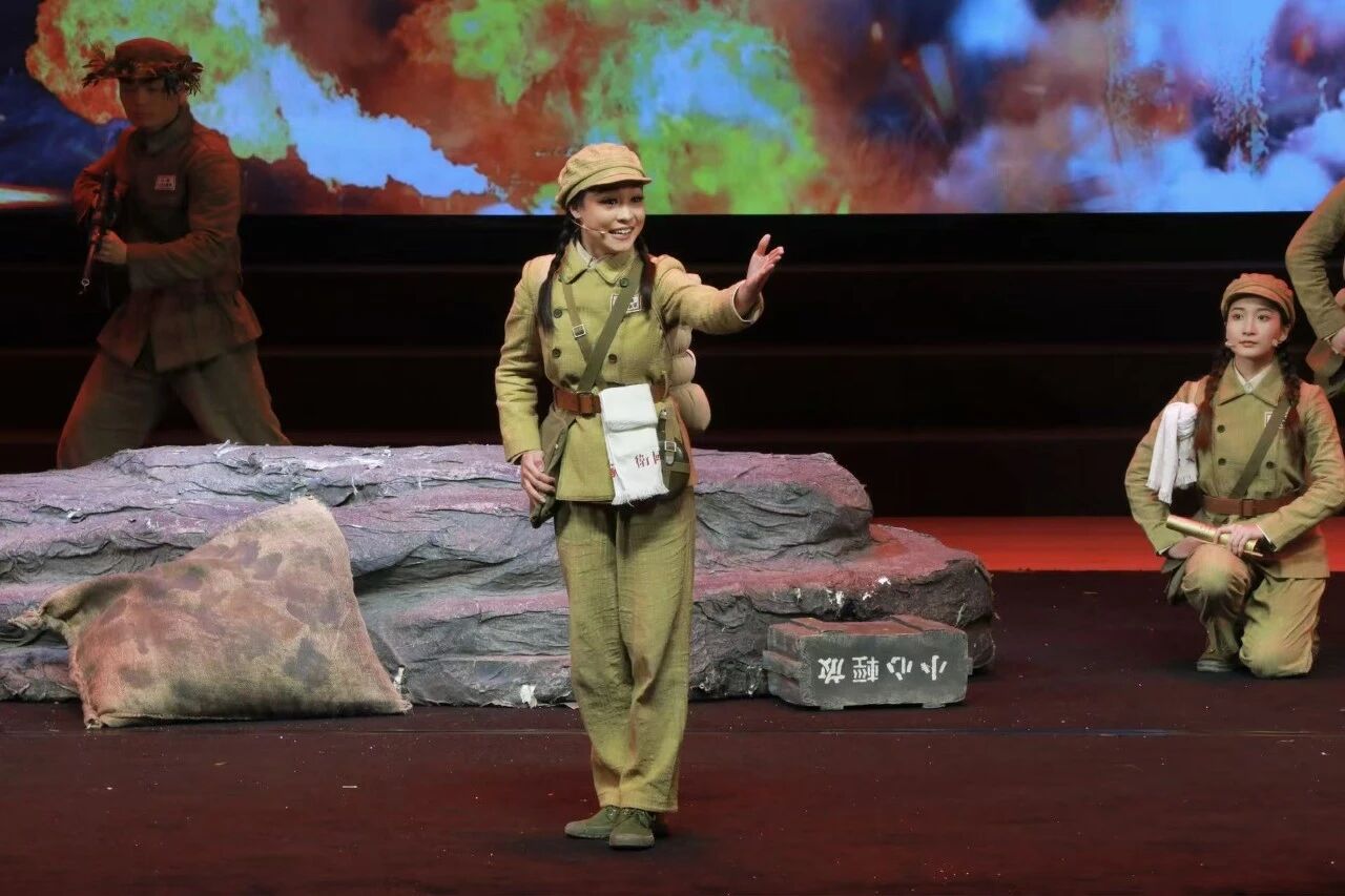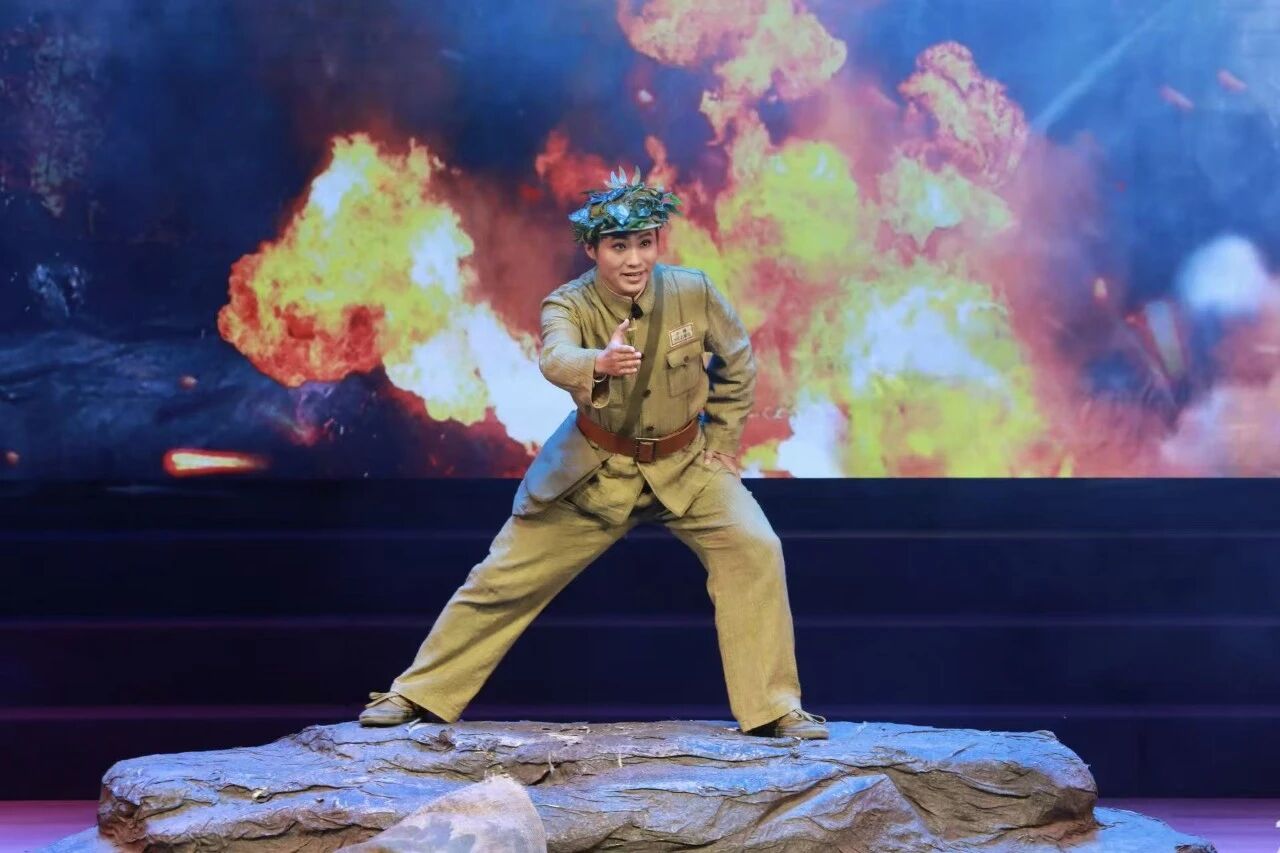 演出当晚,学校大礼堂内气氛热烈。当经典的《英雄赞歌》旋律经过戏曲化改编,以吴侬软语带着铿锵节奏响起时,全场师生被瞬间带回到抗美援朝的峥嵘岁月。当王成“向我开炮”的英雄呐喊声响起时,震撼了全场观众。锡剧作为非物质文化遗产,以其细腻抒情的表演风格、温润婉转的唱腔而著称。在《英雄儿女》宏大的叙事与历史的厚重中,年轻的艺术家们精湛地刻画了人物内心细腻的情感。当“人民战士驱虎豹,舍生忘死保和平”的经典唱词以锡剧韵味唱响舞台时,台下师生眼中泛着泪光,掌声经久不息。