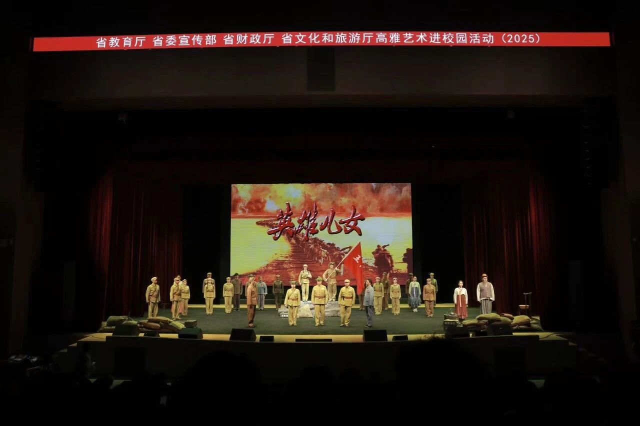 11月13日晚,南京工业大学浦江学院大礼堂内座无虚席。作为2025年江苏省高雅艺术进校园活动的重要组成部分,江苏省演艺集团锡剧团带来的大型红色经典锡剧《英雄儿女》在这里震撼上演。学校顾问朱锦多,团委书记丁岑,艺教中心全体教师及近700名同学观看了本次演出。