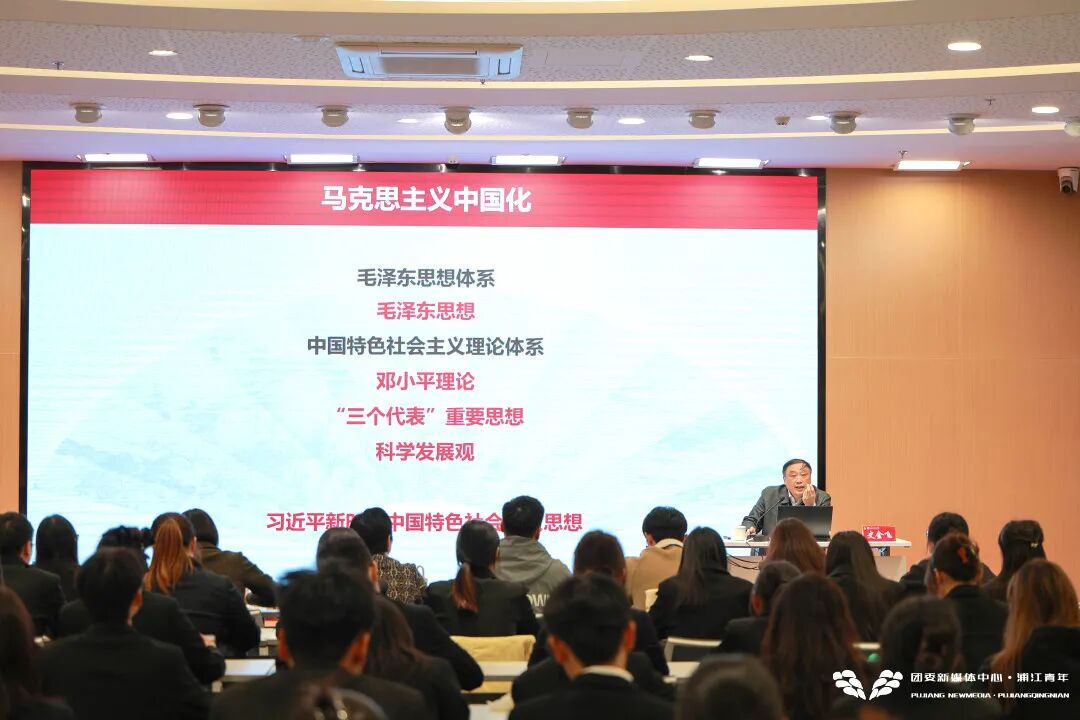11月17日晚,学校党委书记史金飞以“以习近平新时代中国特色社会主义思想为指导 奋力谱写特色鲜明的知名应用型大学新篇章”为主题,为第五期“青马工程”培训班、第四期“星火”团支书培训班全体学员讲授专题党课。本次党课紧扣新时代党的创新理论,立足学校发展实际与青年使命担当,系统阐释新思想的时代背景、核心内涵及其实践指导意义,引领广大浦江团员青年在特色鲜明的知名应用型大学建设进程中挺膺担当。本次党课由党委委员、校长助理朱新娣主持。
