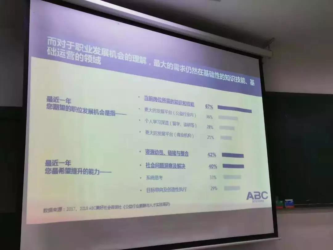 讲座的互动提问环节,同学们积极提问,刘总监耐心解答同学们提出的问题,整场讲座同学们都积极互动,反响热烈。通过刘总监两小时的详细讲述,同学们不仅对公益组织绩效管理和薪酬体系设计有了明确的认识,更加激发了同学们对公益行业的热情及信心。