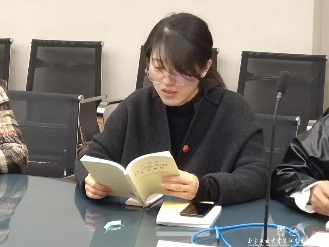 然后,张晓悦老师带领大家学习了《习近平关于“不忘初心、牢记使命”论述摘编》的第八章。其中这一段使张老师感触颇深,她联想到热播电视剧《人民的名义》中一个桥段——信访局柜台高低问题。没有作为,站着也只能弯着腰,这是剧中的官员为了防止上访者长时间反映问题,故意将办事窗口建造很低。这是个反面例子,办事官员并没有设身处地的为群众着想。而在她身边却有一个正能量的事例。张老师谈到,她的的婆婆家住中央门的一个社区,有一次不小心手摔骨折了,街道党员特意买了水果和慰问金来看望骨折的婆婆,婆婆很是感动,见到他们一次就要提一次。从这件微不足道的小事,其实就体现了党员干部如果真正的为群众服务,关心温暖群众,才能真心赢得群众的掌声。其次,张老师分享了第二本书的第十六章,这也正好反映了眼下香港的现状。“一国两制”是一个完整的概念。其中,“一国”是根,根深才能叶茂;“一国”是本,本固才能枝荣。在香港贯彻落实“一国两制”方针,有“三条底线”绝对不能触碰:绝对不能允许任何危害国家主权安全、绝对不能允许挑战中央权力和香港特别行政区基本法权威、绝对不能允许利用香港对内地进行渗透破坏的活动。任何人、任何势力都不要低估中央政府和全国人民捍卫国家主权、安全、统一,维护香港繁荣稳定的坚强意志和坚定决心。试图触碰挑战“三条底线”、干扰破坏“一国两制”,注定是妄想,注定是徒劳,也注定是会彻底失败的。