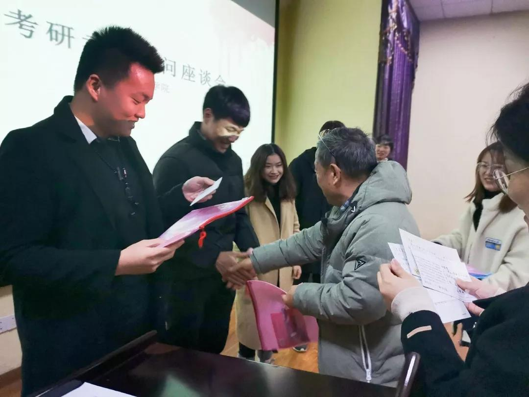 随后,刘金祥副院长为备考学子们发放考试加油包,刘副院长已经连续三年为考研考公的学子们送上温暖与祝福。与以往不同的是,此次学院为每一位考研学子设计了他们心仪的考研高校明信片,并手写了对考研学子们满满的暖心祝福——一张小小的卡片,承载着大大的能量;一份加油包,一份大温暖,愿每位考研考公学子都心想事成,金榜题名!