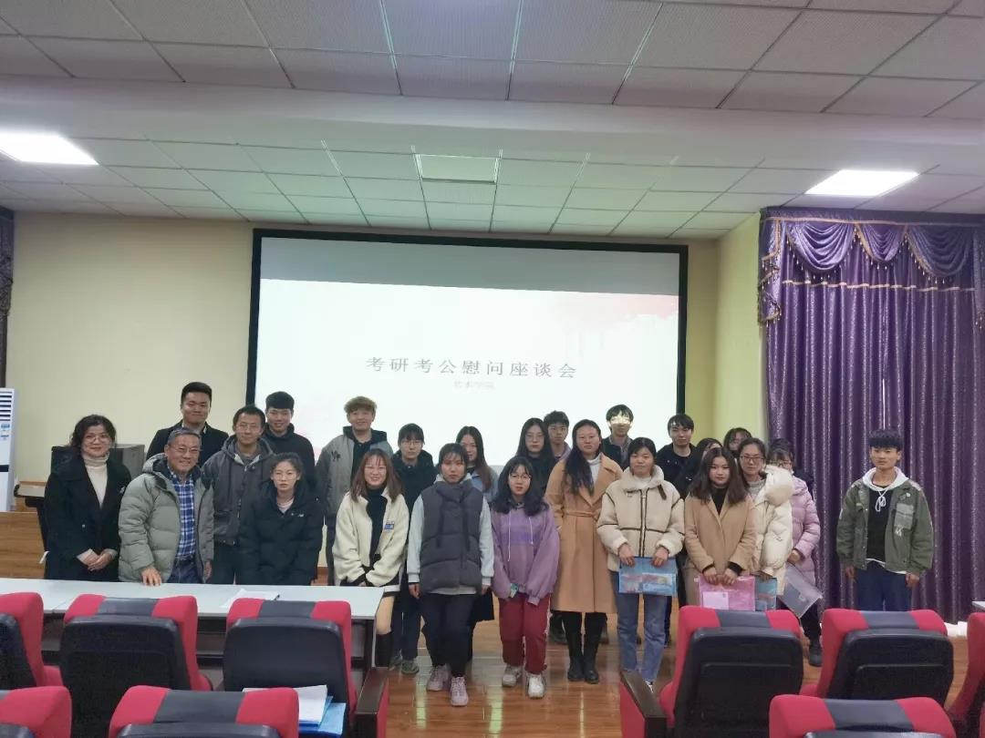 为表达学院对追梦者们努力拼搏的支持,给予他们鼓励与慰问。12月5日,艺术学院学习部在第三报告厅举办“考研考公慰问座谈会”。艺术学院刘金祥副院长和辅导员程路平老师以及16级全体考研考公同学参加此次活动。