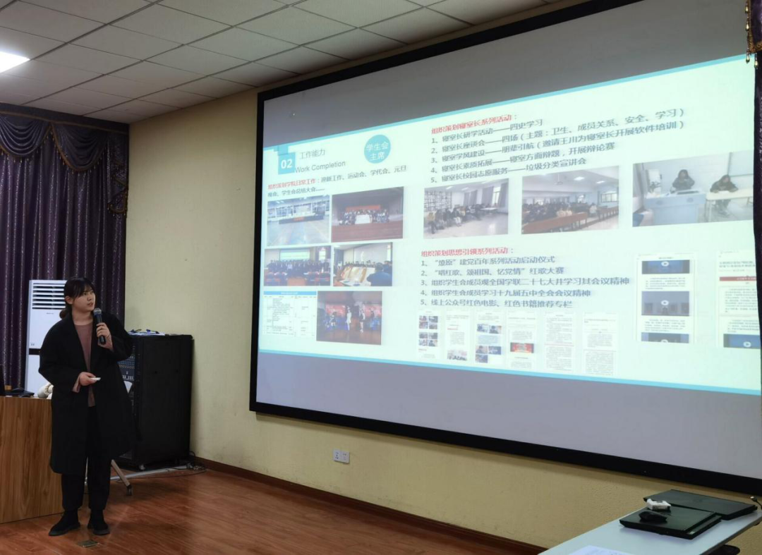 首先是主席团主席杨晴进行述职讲话,她表明学生会制度的建立,加强了学生会的管理,提高了学生会成员的整体素质,帮助学生会成员正确认识自己,改进不足,并确保各项工作顺利开展。