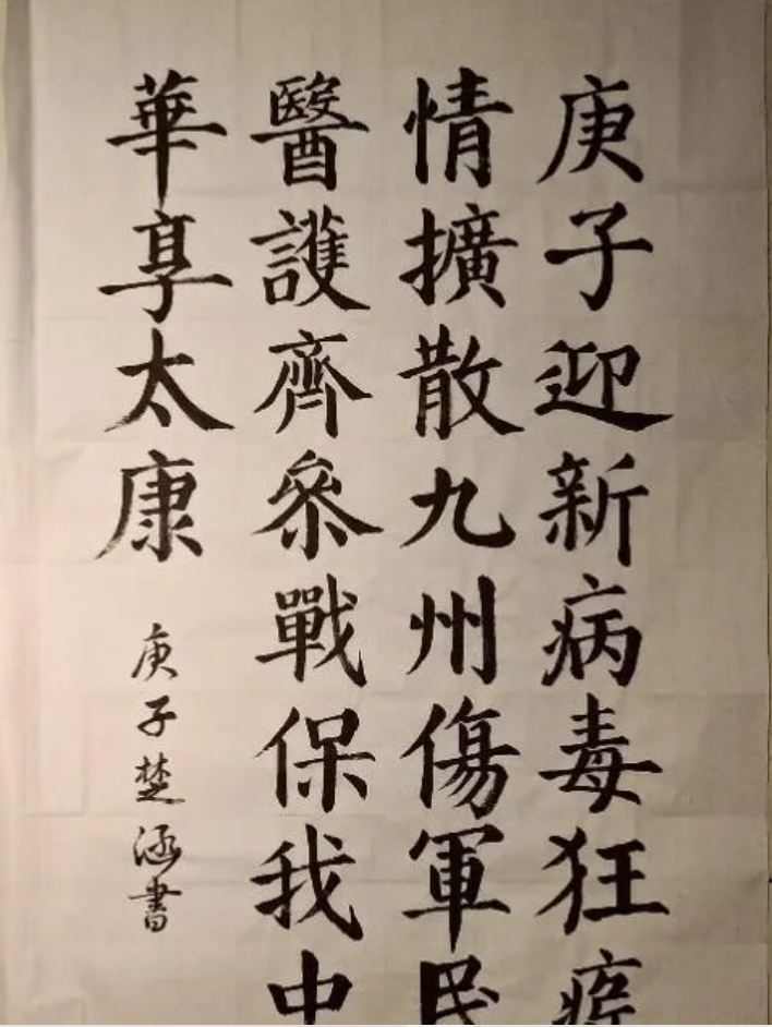 我关注了一个名为翰墨楚风的公众号,疫情期间,文人墨客们也集尽表达着对祖国的爱,对一线军民医护人员的敬佩与致意,送瘟神,迎太康,也是我的这幅作品所想表达的。