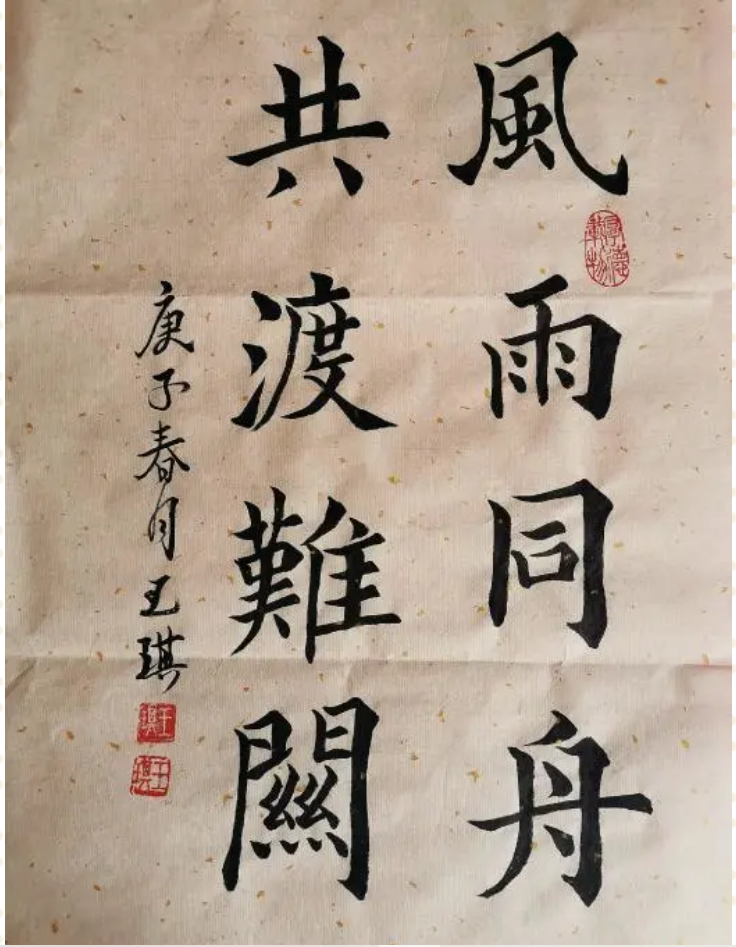 2020年庚子鼠年伊始,中国武汉新型冠状病毒感染的肺炎疫情就来势汹汹,牵动了中华人民的心,许多有能力的人纷纷献出了自己的力量,捐赠了物资。中国是一个大家庭,有着团结拼搏的优良传统。此时,我也在心中默默祝愿中国能过度过这次难关,于是写下:“风雨同舟,共渡难关”。让我们艺起战役,武汉必胜,中国必胜!