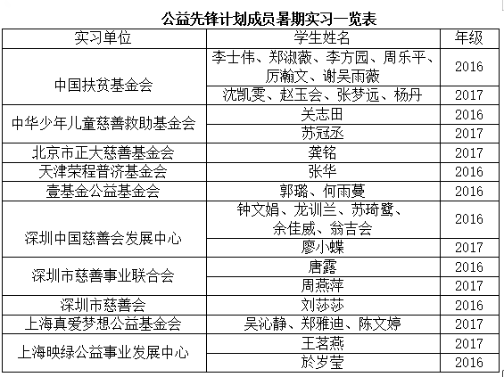 公管院公益先锋计划成员奔赴各大知名公益组织实习