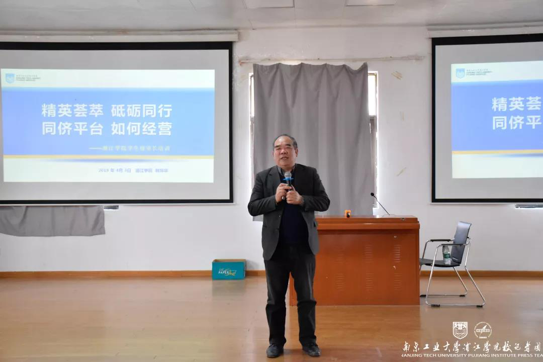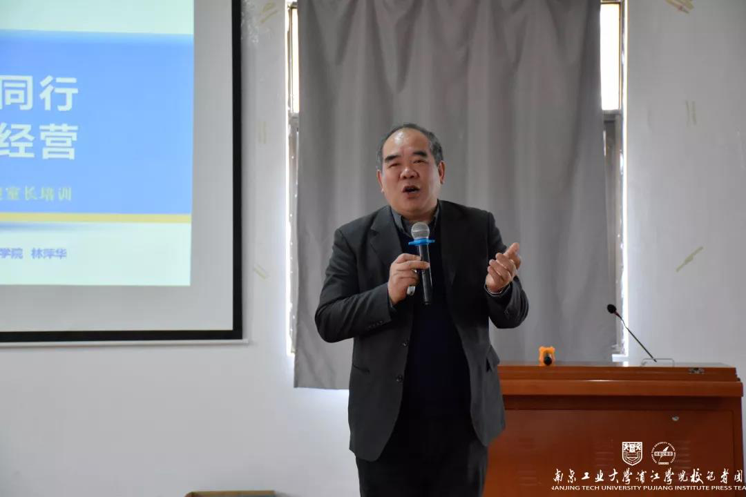 林萍华校长以“精英荟萃,砥砺同行,同侪平台,如何经营”为题发表了重要讲话。首先,林校长通过解读习总书记的讲话,结合浦江学院的办学宗旨与育人目标,对人才培养目标作了详细解读,进一步指出浦江学子应具备与他人友好相处的能力与企业家精神。林校长还结合自身从青年至今的求学与工作经历,号召大家不要去刻意追求,做好当下,用积极的态度去尽力做好每一件事。