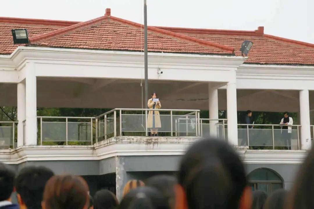 辅导员从彩虹老师代表学校对商院全体同学提出了几点期望。她希望同学们能够树立鸿鹄志,做一个有远大志向的奋斗者;锻造不惧风雨,顽强拼搏的进取精神,让爱国的种子在心中生根发芽。