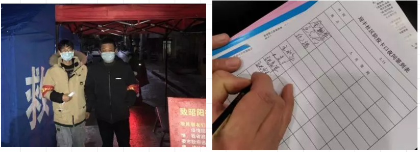 2月初在疫情逐渐严重的时候,我主动报名当上了青下社区防疫志愿者,每天跟随社区的领导走街串巷、进门入户进行防控的宣传与登记工作。刚开始社区的居民对疫情重视程度并不够,“口罩文化”没形成,还会三五人聚集在一起。我就陪着社区的万书记进行逐个劝阻,并对每户的外来人口进行普查登记,做好社区“五防”工作,紧盯管控“小缝隙”。后来,推行区块化防疫管理,实行“出入证”制度,我被领导安排在社区出入口处对进出车辆和人员严格登记,做到底数清、来路明、去向准,日夜值班,风雨无阻。
