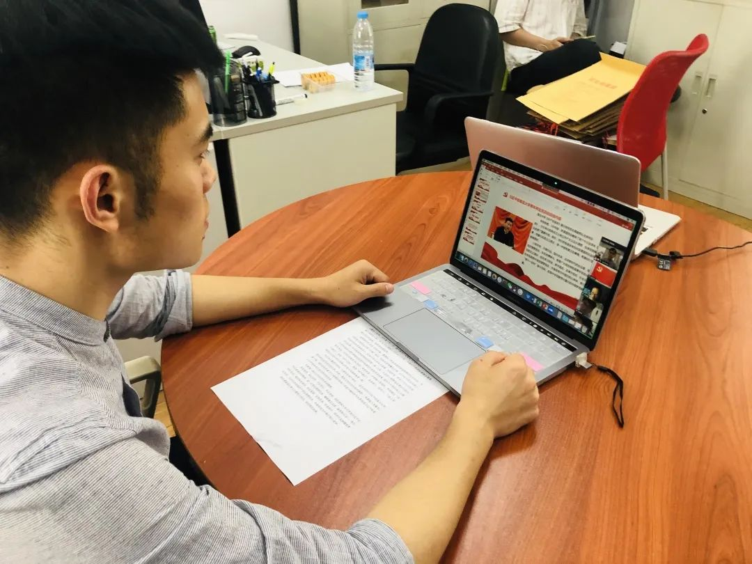 本次活动由曾祺尧老师担任主持人。他说到:虽然我们在2020年的开端,遭遇了突如其来的新冠病毒的巨大冲击,今天的党日活动也只能“云端”相见,但是从疫情爆发以来,在习近平同志为核心的党中央的坚强领导下,全体中华儿女众志成城,共克时艰,更有千千万万的党员同志第一时间投身到疫情防控的第一线,正是广大党员干部群众的责任与担当,才会有现如今我们国家在抗疫中取得的阶段性胜利成果。我们今天利用线上主题党日形式共同纪念建党99周年,使党员进一步明确入党动机,牢固是树立“四个意识”、坚定“四个自信”、做到“两个维护”,在思想上,政治上行动上始终同以习近平同志为核心的党中央保持高度一致。