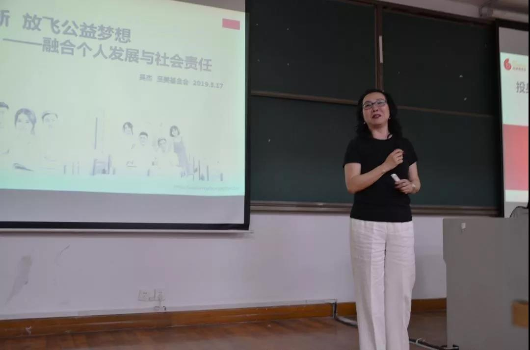 第一位分享嘉宾是至美基金会秘书长吴杰老师,吴杰老师曾历任北京立德未来基金会副总裁并主管募资工作、黑土麦田公益首席运营官,具有丰富的战略咨询、市场和营销管理经验。分享的开始首先详细的阐述至美基金会的宗旨与目标以及团队的价值观,提出要融合个人发展,肩负社会责任,介绍复旦大学-雨芽器官捐献推广项目、浙江大学-财商素养普及项目、北京大学进展现状。分析当前中国的公益事业的发展现状并与国外相比较,中国学生志愿服务比例远远低于国外,中国现有800万左右的公益人才缺口,公益慈善是一个朝阳行业,我们正处于第二个慈善行业发展的十年。公益行业要培养高端人群与政府、学校、社区等阶层接洽,大学生不要局限于书本,寻找自己,敢于实践,致力于公益服务,学会释放,放下包袱的同时砥砺前行,大学生同时应积极创新且有公益活动的经历,推动高校公益的发展,学会获得资源并且利用好资源,发展自己,明白公益行业在就业中的优势地位,即使是在大数据时代,AI行业取代了其他行业的就业机会,也无法取代公益行业的就业机会,当代的大学生面对就业应当持有前瞻性,在未来,公益行业将处于更有利的地位。