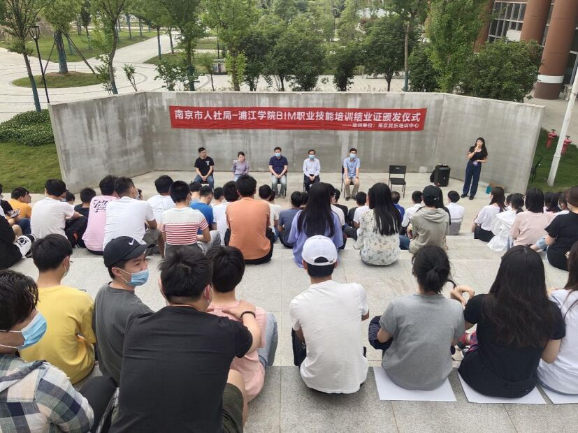 5月21日下午,土木与建筑工程学院在L9东北角外侧石阶音乐台举行了“南京市人社局—浦江学院BIM职业技能培训结业证颁发仪式”。