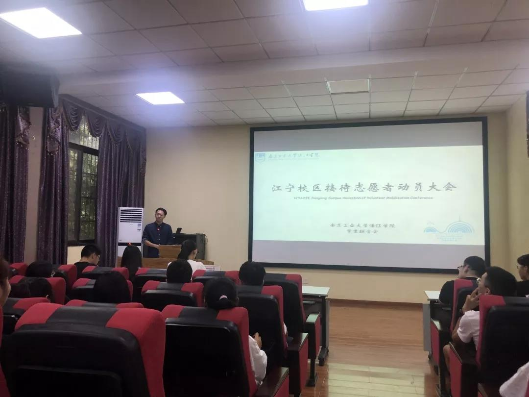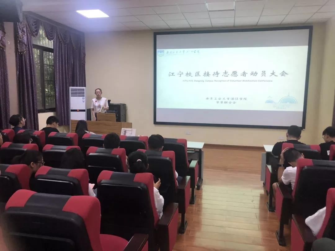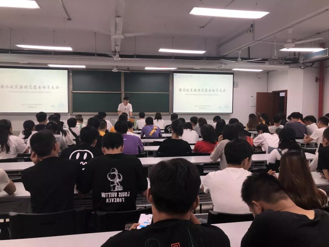 2019年9月5日17:30,校学生联合会在江宁校区第三报告厅,溧水校区L8—214教室,举行了“2019迎新生接待志愿者动员大会”。