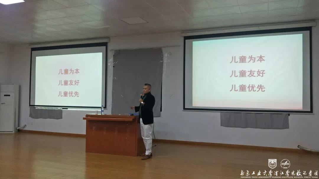 《为儿童而设计》讲座邀请到的主讲人是国际生态设计师协会专家陈展辉老师。他主要讲述了三点内容:一要对儿童这样特殊群体的关注,以“儿童为本、儿童友好、儿童优先”的理念 ;二要凹凸思维儿童空间设计,以儿童、空间、设计为切入点; 三要对艺术设计观念的转变,利用闲置资源,做好服务设计、未来设计以人为本。