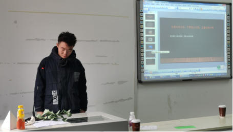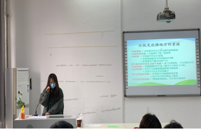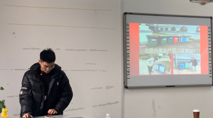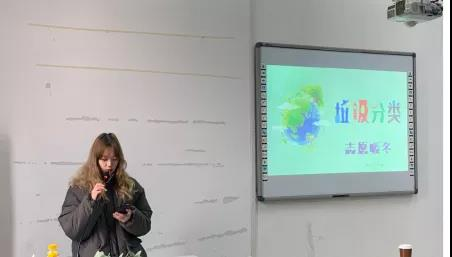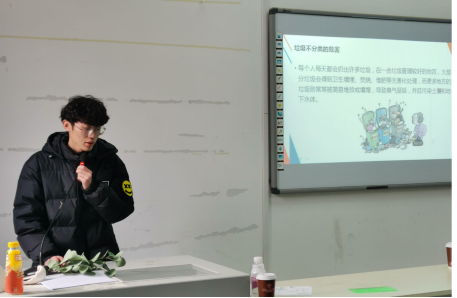接下来,产品一班寝室长代表丁泰诚给我们列举了许多垃圾分类的益处,让我们明白垃圾分类不仅是为了身边的环境更加美好,更是为了地球的可持续发展。