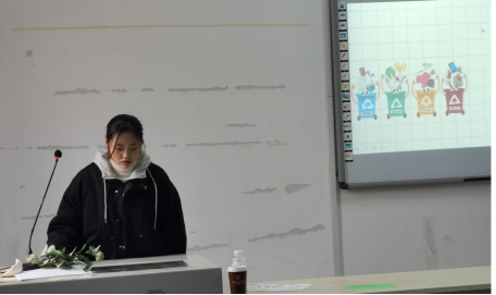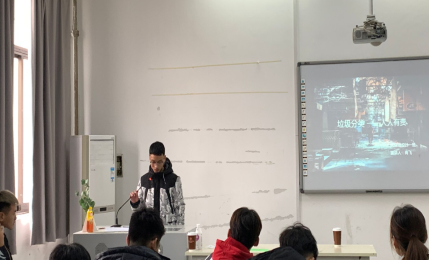 首先,环艺一班寝室长代表肖飞为我们介绍了垃圾分类的具体含义,并将日常生活中常见的垃圾进行分类,为我们日常生活中的垃圾分类提供了一个参考。