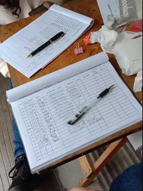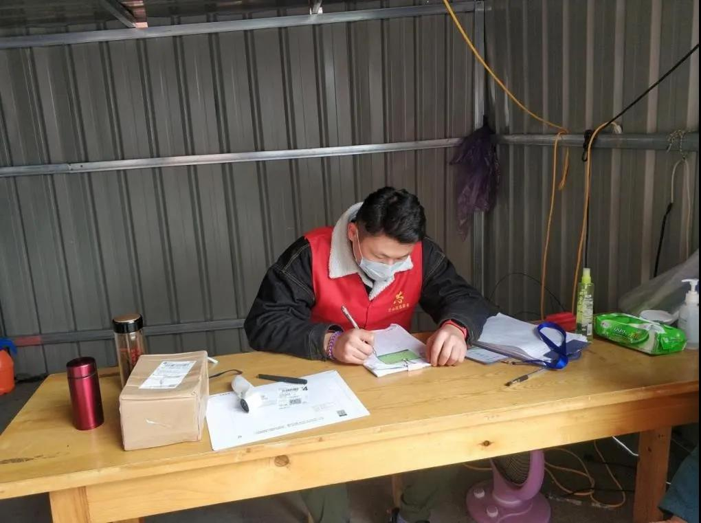 图为:刘子为在记录出行人员情况