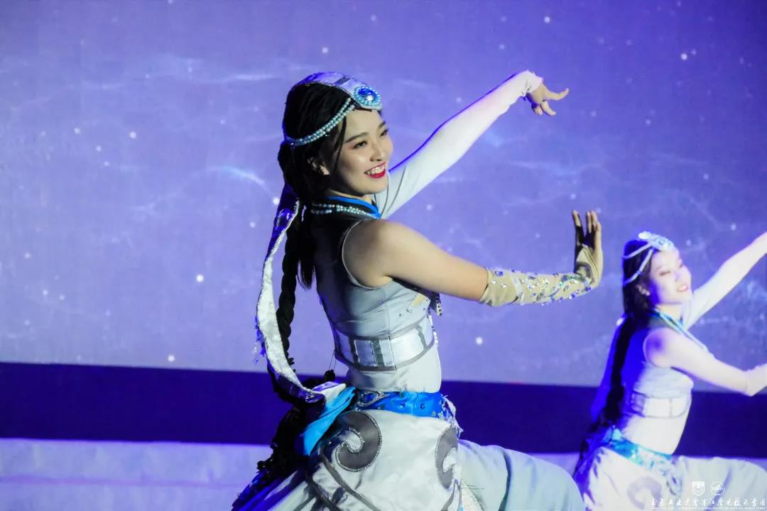 灯光开始变得迷离,光下似有薄烟翻滚,由校舞蹈团精心编排的舞蹈《天浴》叩响了新生们通往新生活的大门。