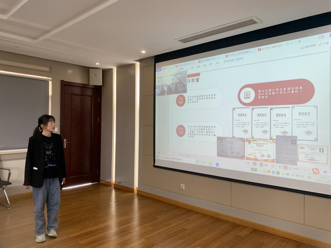 会议伊始,程路平辅导员具体介绍了参会人员与答辩规则,在抽签决定答辩顺序后,她宣布此次会议正式开始。