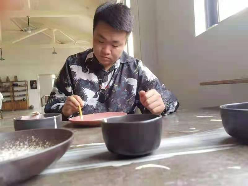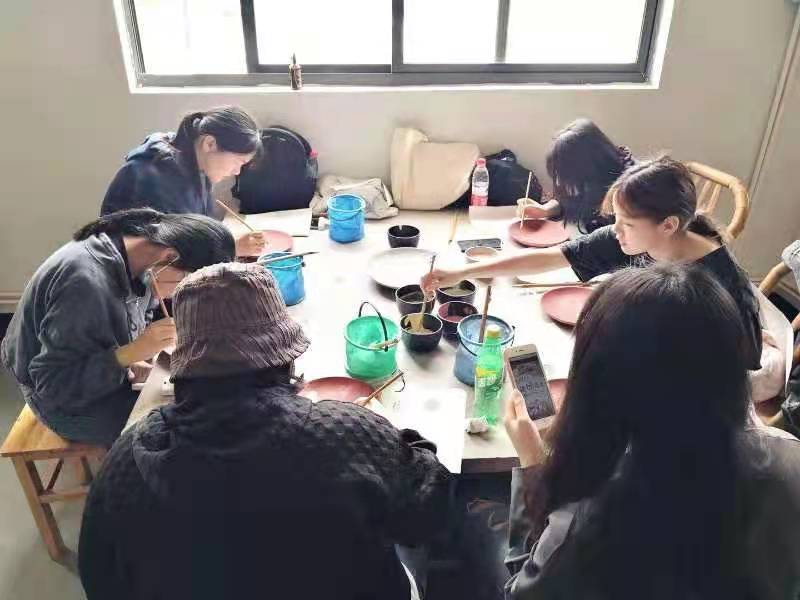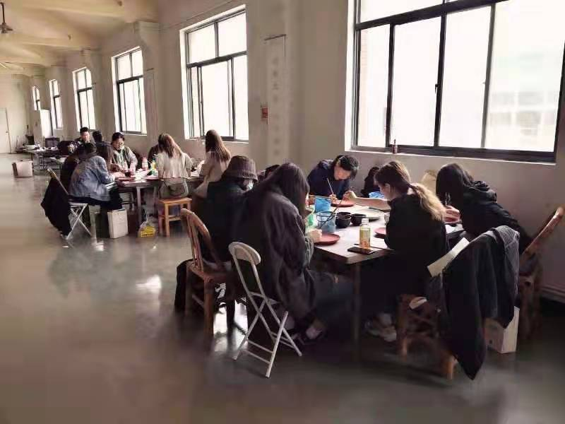 “画笔挥洒釉面,党性牢记心中”,4月24日,艺术学院2020级视觉传达设计专业在李亦文院长、班主任张美萍老师、王鹏辅导员的带领下,来到宜兴市万宝陶瓷实验基地,以“建党百年系列活动—燎原”为主题,进行“陶瓷作纸献真情”实践创作。