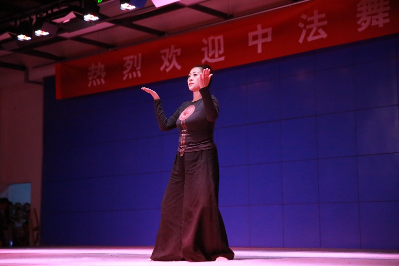 2015年10月30日18:30,在我校多功能大厅,中法舞蹈艺术碰撞交流会圆满成功。参加表演的主要有法国表现舞蹈团,校大学生舞蹈团,校太极武术队和校大学生Halo合唱团。中法艺术家共四人,分别是中国文化大使,中国文化养生专家,法国东方文化传播中心的创始人和总教练,国际健身气功联合会副主席,武当武术传承人Ken Wen,法国舞者Marceau Chenault, Isabelle Saulle,Adolfo Vargas。晚会中,校太极武术队带来的太极拳表演《明月清风》一招一式,阴阳相序,给观众留下来很多震撼。Ken Wen老师带来的气舞时柔时刚,令观众们大开眼界。吴新亮老师带来的太极拳体现了中国功夫独特的魅力。法国舞者带来的现代舞随性,生动,富有表现力,带观众领略的法国的浪漫风情。校大学生舞蹈团带来的群舞《走在山水间》,形象地表演体现了壮族人民的热情。最后在校大学生HALO合唱团为我们带来的《浦江祝福你》中温馨落下帷幕。