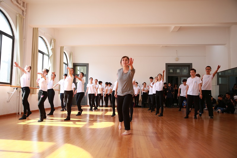 上午九时许,舞蹈团成员们穿戴整齐来到舞蹈房等候柯文老师一行人。他们的到来瞬间点燃了同学们的热情,并将同学们带入舞蹈艺术的氛围中。同学们都十分感谢中法舞蹈艺术家们给我们带来的宝贵的艺术体验。