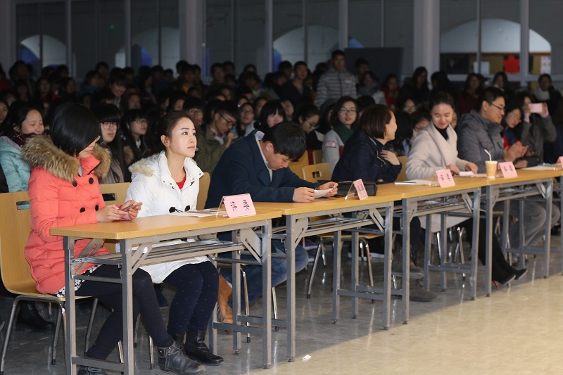 为繁荣校园文化生活,普及心理健康知识,推动校园文化建设,在11月26日这个感恩节的夜晚,多功能大厅内举办了 “放飞心灵,剧汇梦想”首届校园心理剧大赛。莅临本次心理剧大赛的评委有:校团委书记丁岑,江宁区心理学会副理事长陈沛然,社团联合会负责老师张汉文,学工处宣传负责老师卢珊以及心理健康负责老师刘雪。大赛由曹健和翟颖主持,开场一首男女对唱《我想我是海》,使比赛在温暖而又激烈的气氛中拉开了帷幕。