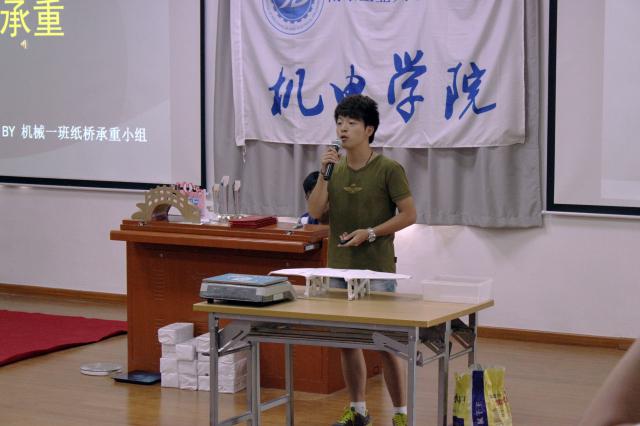 5月26日中午12:30,机电学院在第一报告厅成功举办学生工作开放日“第一届科技节——纸桥承重大赛”。