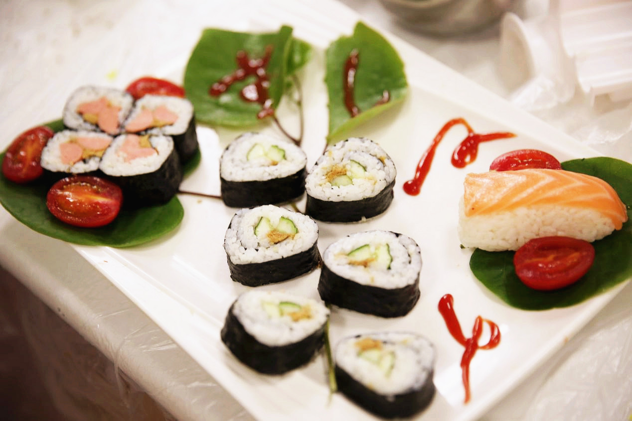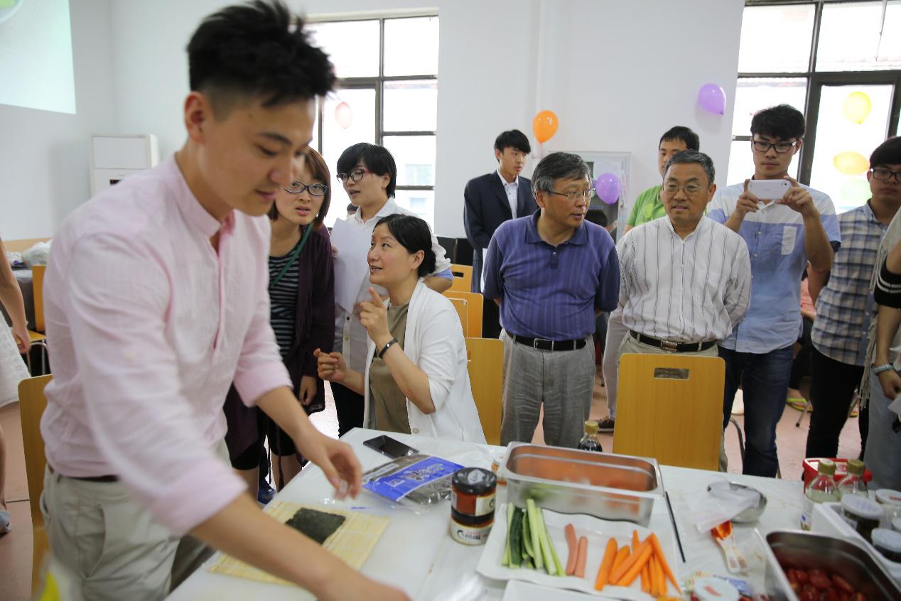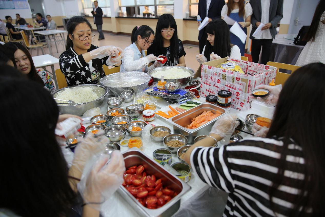 2015年5月27日下午四点,外国语学院、汽车服务与管理学院于学校第一食堂共同举办了学生工作开放日“寿司做做看”比赛活动,展示了美食的魅力,更让大家感受到了寿司背后蕴含的日本文化。