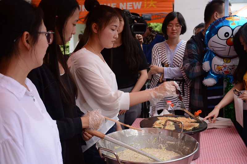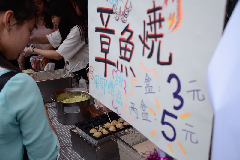 外国语学院全体同学积极参与,在活动场地搭建展棚,分为六个区域进行关于日本大阪文化的展示与互动。六个主题分别为:大阪烧制作、章鱼烧制作、甜点展示、cosplay展示、漫画展示、日式玩偶制作与展示。此次活动与创业相结合,章鱼烧、大阪烧、甜点以低价售出,让学生品尝到正宗的日本美食。