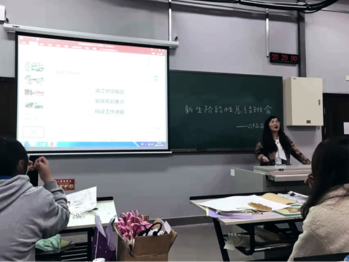 在班会的最后,程老师向同学们表达了真诚的祝愿,寄予了殷切的期望,希望同学们在努力学好专业知识的同时,积极参加课外活动,培养与人交往的能力,提高自己的胜任力,不断丰富自己的大学学习生活;在仰望星空的同时,也不要忘记脚踏实地,不负父母,不负青春,成为一位有理想、有担当、多方面协调发展的大学生!