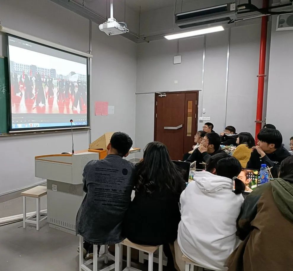 在班会上,程老师首先带同学们回忆了来到浦江,加入艺术学院这个大家庭以来的点点滴滴。从最开始军训时同学们的坚强团结,到宿舍大检查时的温馨氛围,运动会上大家的热情与活力,再到党课学习时的学员风采。一幕一幕在图片、视频的记录下变得有迹可循,同学们一起观看视频,回忆点滴时百感交集。