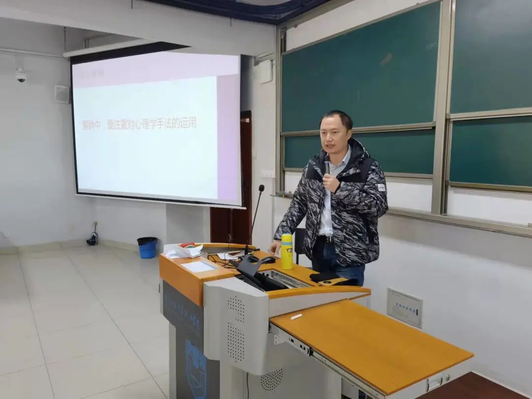 之后,褚蓥老师从认知对比策略角度带领同学们分析了如何运用可以形成反差的认知对比手法把产品销售出去,并从社会认同法则的方面,结合购物好评案例向我们展示从众心理以及饥饿营销力量的强大。与此同时,褚蓥老师还提出客户营销中的“赞美策略”技巧,以“人们往往都喜欢听赞美自己的话”为例,向我们展示了动人的言辞亦是成功营销的制胜筹码。