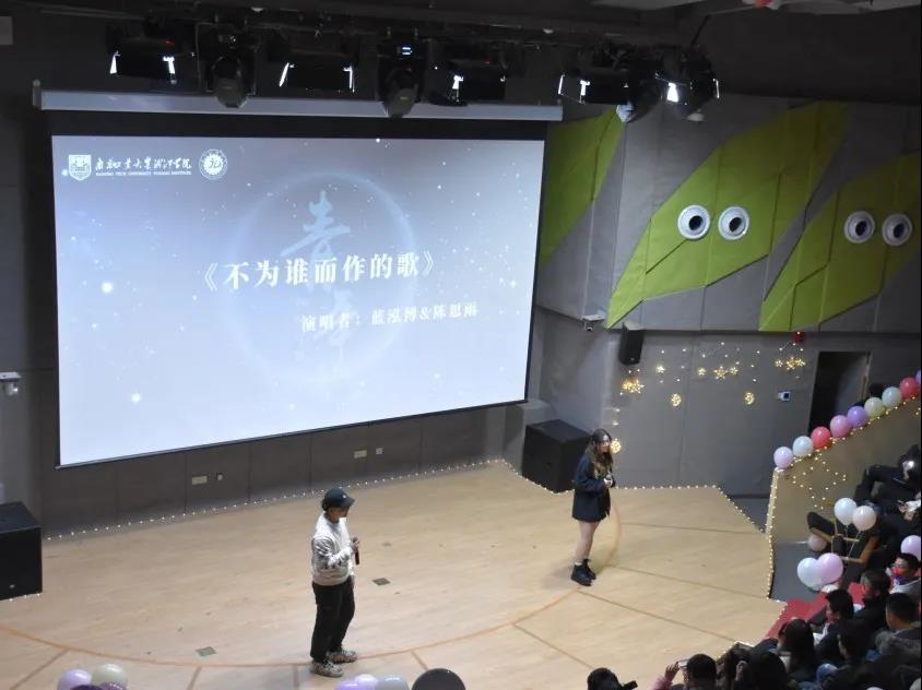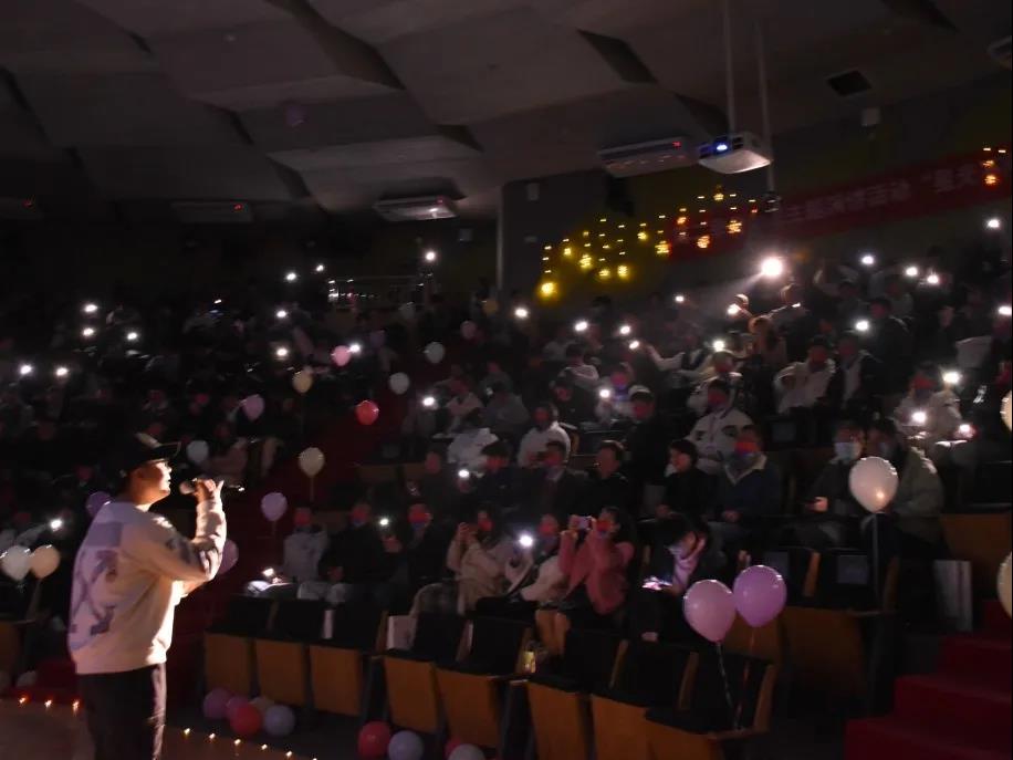 优美的歌声在整个报告厅回荡,同学们在听到这悦耳的歌声后都不由自主地挥舞起手机灯光与两位歌手互动。