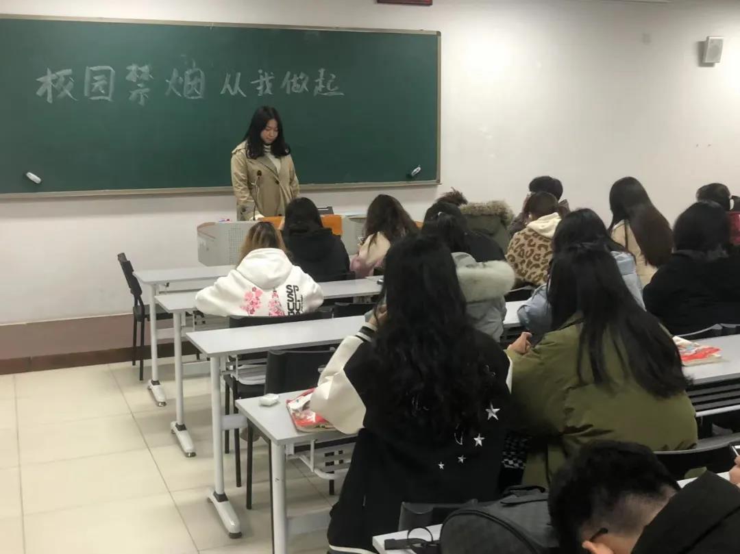 而在校园禁烟主题方面,从实际案例出发,班长向同学们普及了烟草的品种、讲解了烟草及电子烟对同学们身心健康成长的危害性,并且以PPT形式为同学们普及烟草烟雾知识、控烟禁烟法律知识,从而引导同学们如何远离烟草、拒绝烟草,养成科学、健康的学习生活习惯。