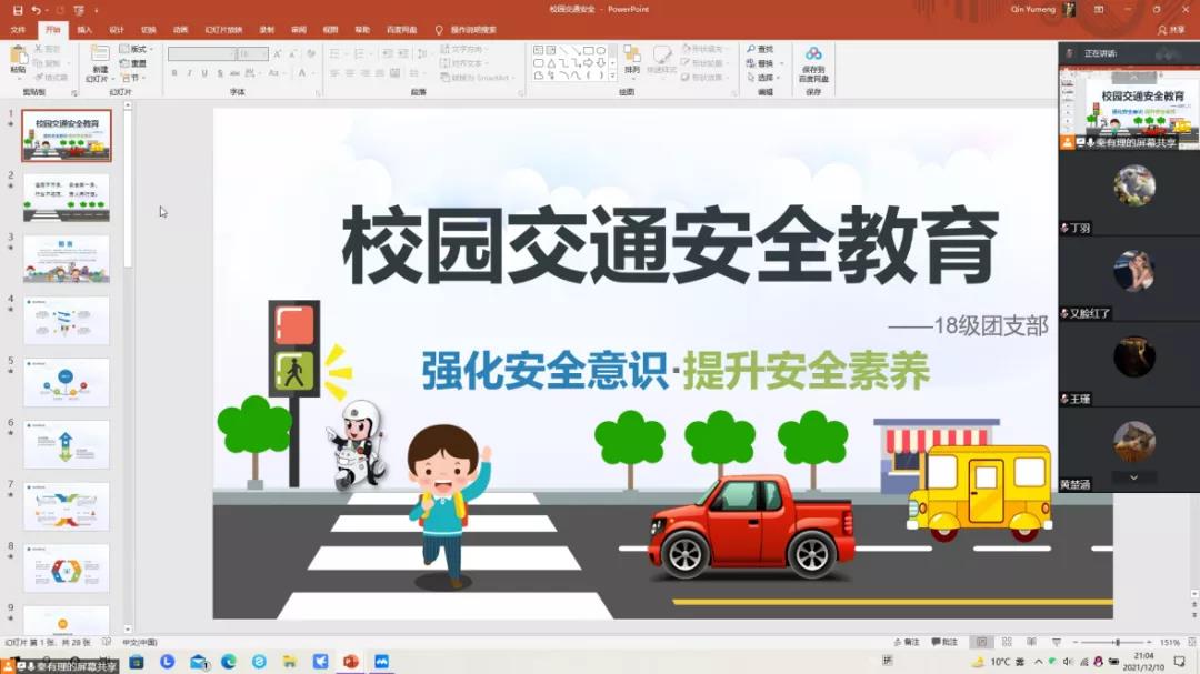 而在“机动车,非机动车管理,校园道路交通安全”的主题班会上,崔丹同学宣讲了加强校园道路交通安全的重要性,为大家说明了没有加强校园道路交通安全意识的危害。