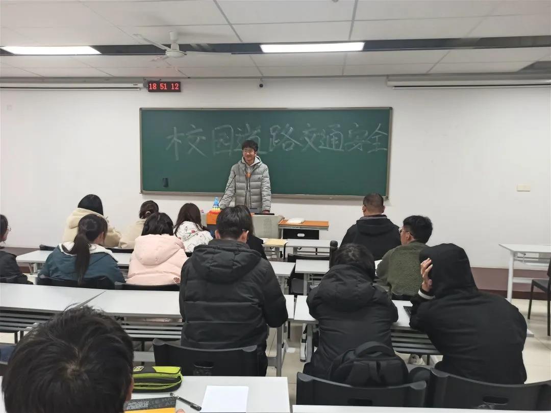 校园道路交通安全班会上,团支书张敏同学通过事例分析,警醒同学们提高自身交通安全意识。